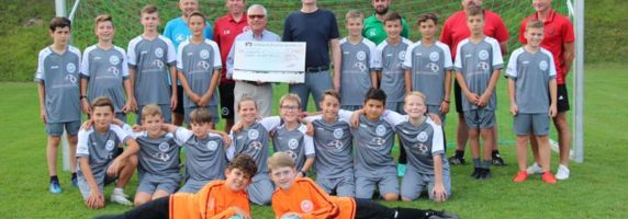 Stolz präsentieren die Nachwuchsakteure der D-Junioren der JSG Kraichtal ihr neues, von der Sparkasse Kraichgau, der Stadt Kraichtal und dem Verein Kraichtal hilft e.V., gestiftetes Mannschaftsdress...
