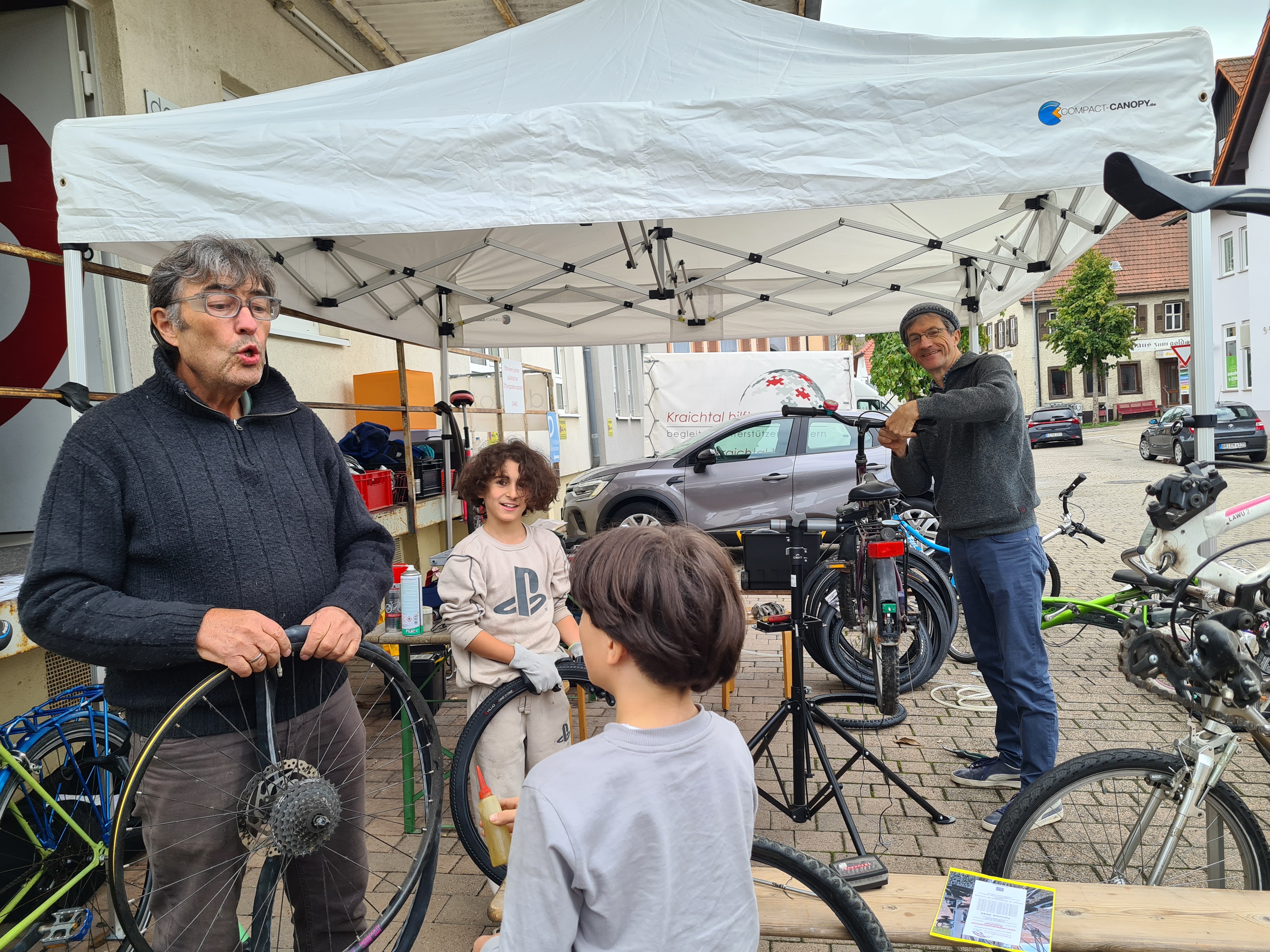 Zu den beiden Highlights des Tages zählten der interaktive Parcours „Teste deinen ÖKOLOGISCHEN FUßABDRUCK“ sowie das Angebot der Fahrradspendenbörse von Kraichtal hilft e.V.